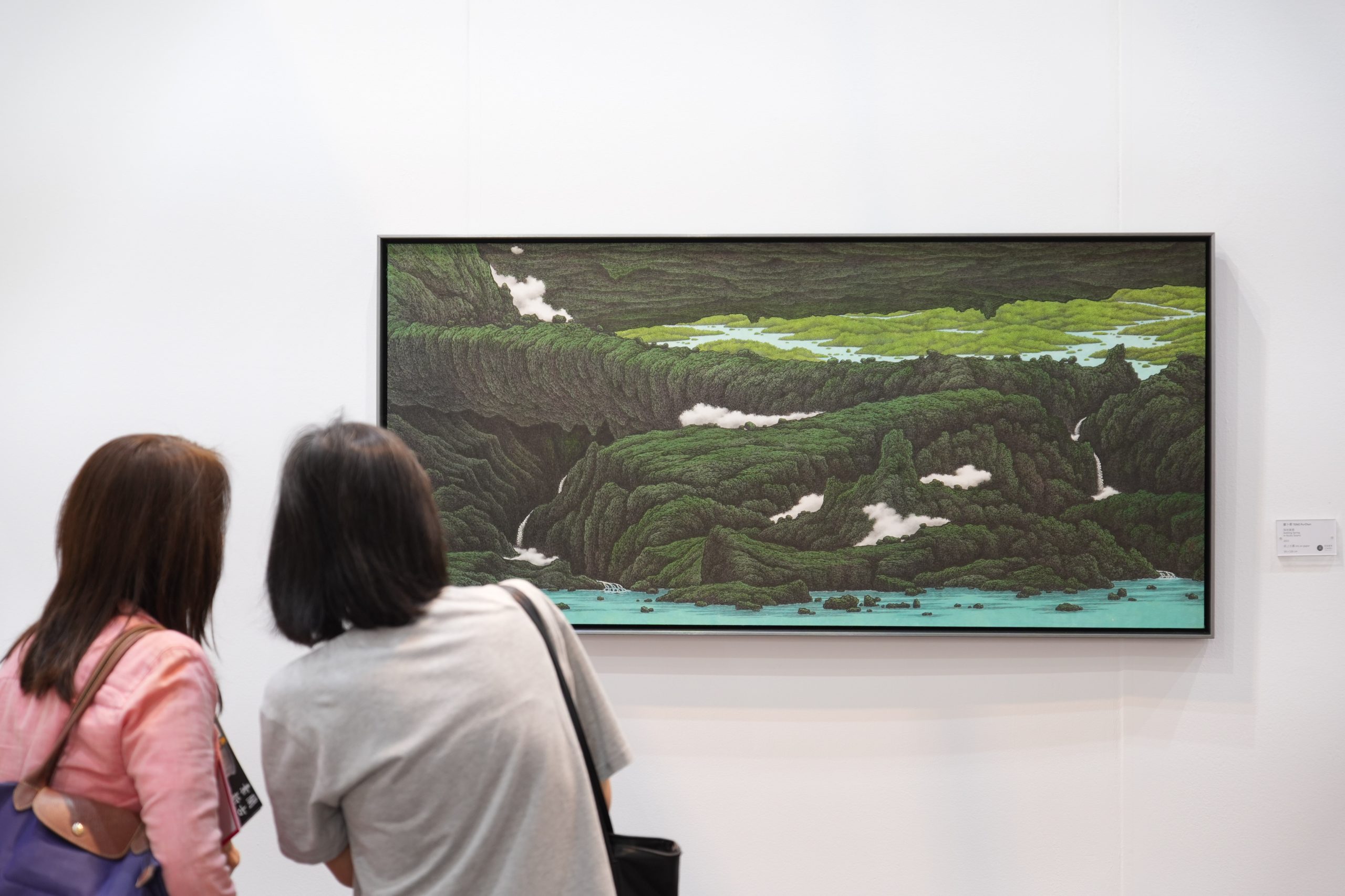 来自台北的采泥艺术专注于展示台湾艺术家的当代艺术作品。上图作品由台湾艺术家邓卜君(1957年生)所创作。他的作品将中国传统水墨的美学与西方当代超现实主义风格很好地揉合到了一起。